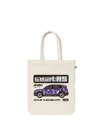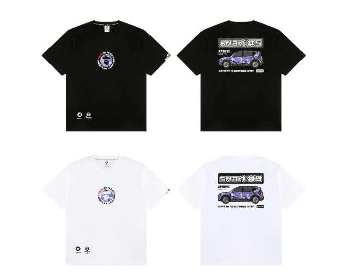 为纪念合作,AAPE与smart以联名汽车为设计蓝本,释出黑色、白色两款限定短TEE。正面加持由双方品牌字母环绕组成的简约联名图案;背面则覆盖醒目的联名汽车图案印花,诠释源自街头的独特调性。拥抱年轻新世代的生活方式,双方亦释出汽车造型的托特包,为都市旅程增添随行活力。