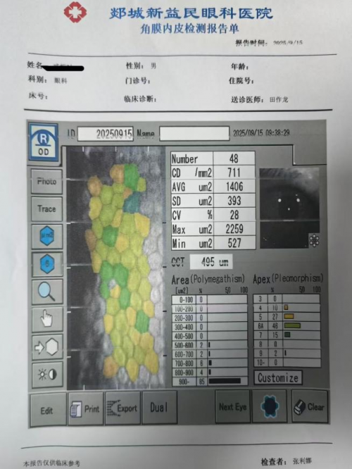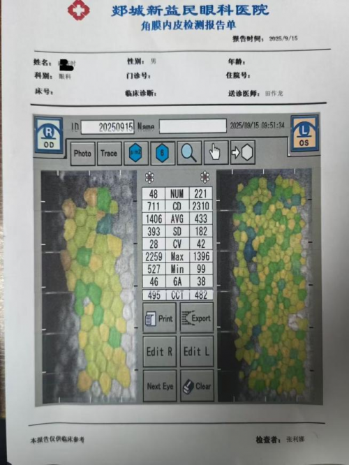 来自徐州铜山的王大爷(化名)被白内障困扰多年,却因角膜内皮计数仅 711(远低于白内障手术常规安全阈值),在多家医院遭遇 “手术禁忌” 的困境。角膜内皮是维持角膜透明性的关键结构,数值过低意味着手术风险剧增,稍有不慎便可能导致角膜水肿、浑浊,甚至失明。