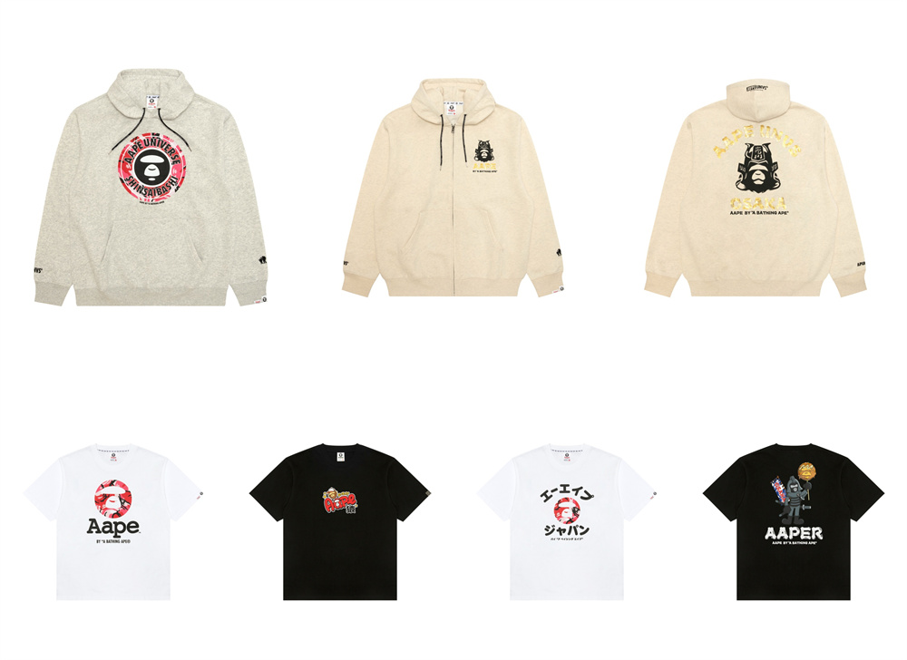 为庆祝开业,AAPE特别推出心斋桥限定系列服饰,以粉色迷彩贯穿T恤及卫衣的设计。大阪限定系列则趣味融入章鱼烧、武士等当地文化与传统日式元素,以生动设计致敬这座充满历史底蕴的古城。限定系列现已登陆大阪指定专门店。